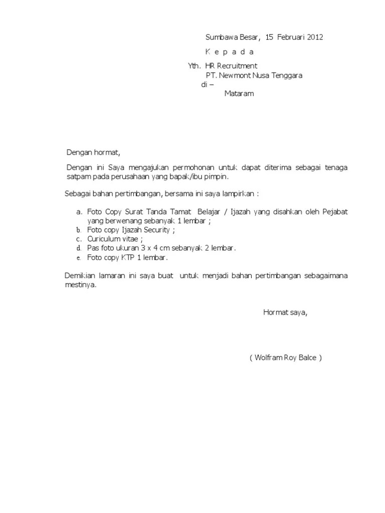 Surat lamaran kerja security di hotel · daftar riwayat hidup; · kartu tanda penduduk (ktp) fotokopi; Contoh surat lamaran kerja posisi satpam/security.mudah mudahan video ini bermanfaat bagi teman teman yang ingin menjadi anggota satpam. Surat lamaran kerja berfungsi sebagai dokumen pernyataan diri, untuk melamar suatu posisi pekerjaan kepada orang atau perusahaan. Jadi pada bagian awal tentunya.